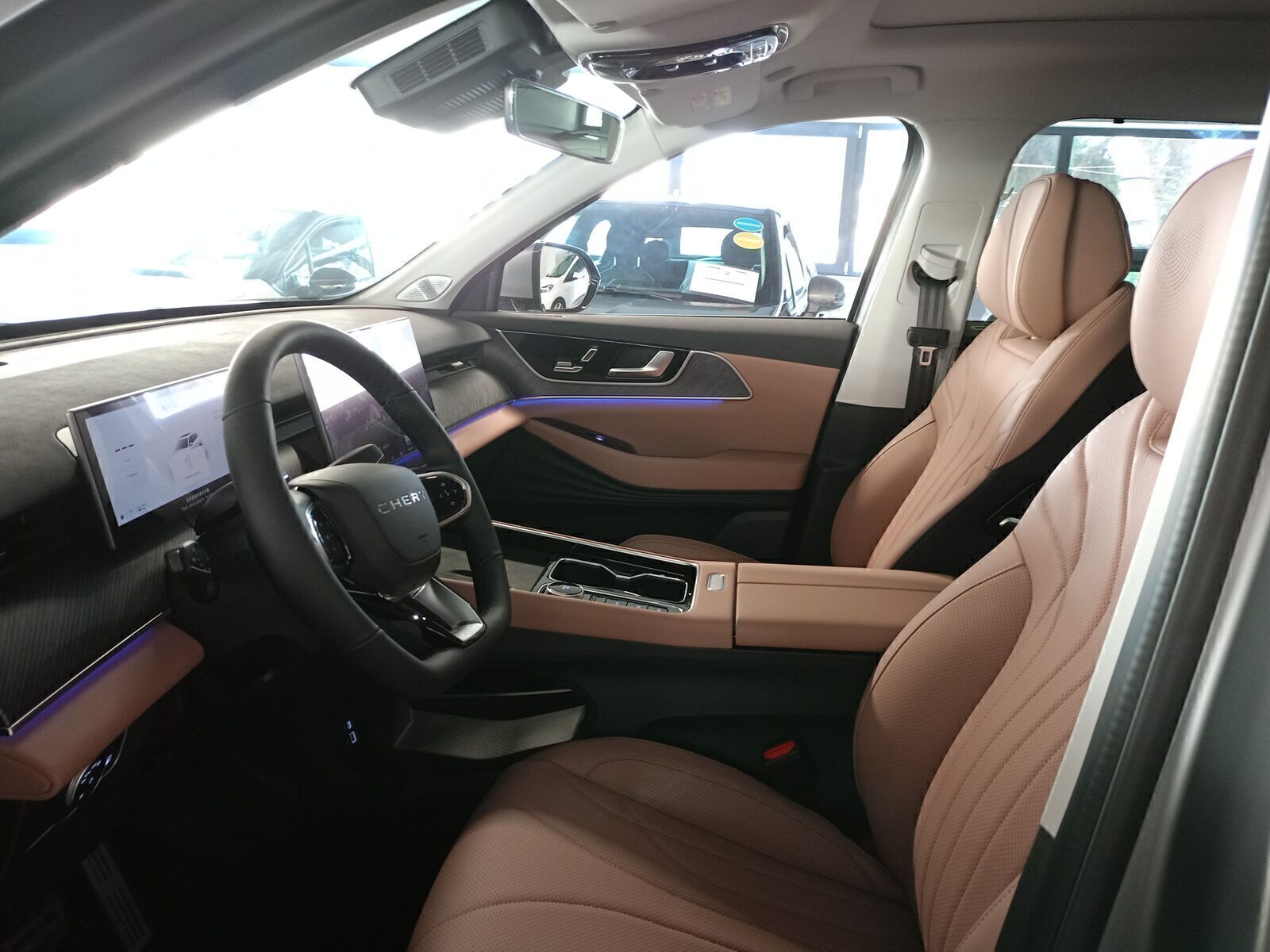 Καθίσματα με επένδυση καφέ δέρματος